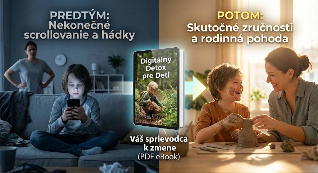 Máte pocit, že mobil je dôležitejší než vy a vaše dieťa sa stráca v digitálnom svete? Nemusíte byť „zlým policajtom“, aby ste túto dynamiku zmenili. Tento PDF sprievodca vám ukáže, ako nahradiť modré svetlo skutočnou radosťou.